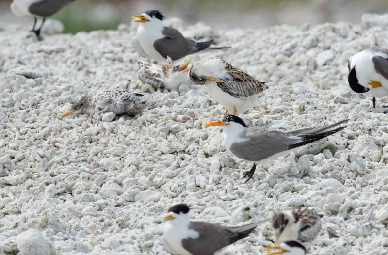 ◆鳥類特色│澎湖為燕鷗重要繁殖地,常見白眉燕鷗與小燕鷗群聚,而體型較大、橘黃色長嘴醒目的鳳頭燕鷗亦常混群活動,於離島沙洲築巢繁殖,夏季成群盤旋覓食,展現熱鬧海鳥景觀