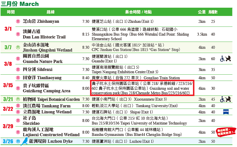 例行活動3月份貴子坑露營區誤植公車號碼:
